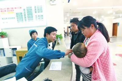 约10分钟后,又一对夫妇抱着一个两三岁的小男孩神情慌张地跑到分诊台。