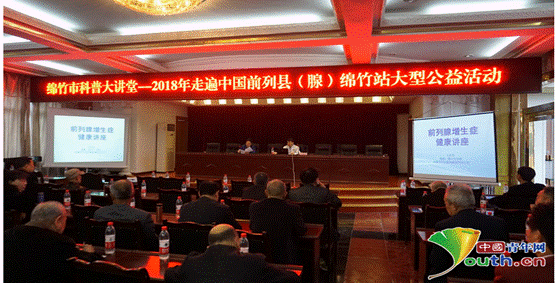 上午9点,在该市剑南镇人民政府二楼会议室,绵竹市科普大讲堂——2018年走遍中国前列县(腺)绵竹站大型公益活动邀请成都军区总医院泌尿科主任王庆堂讲授前列腺的预防和治疗。绵竹市的老干部、老科技工作者、老年市民近50人参加了讲座,王庆堂从前列腺的结构、病症、发病原因、疾病预防、治疗及手术等方面进行了讲解,还对现场听众的提问进行了耐心答疑。
