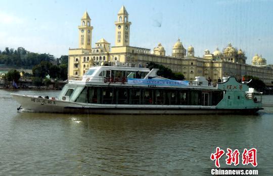 执行福州市2018年春季公益骨灰撒海活动任务的一首游船驶向闽江口。 记者刘可耕 摄