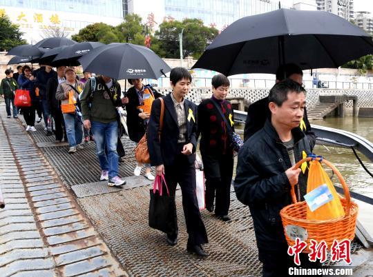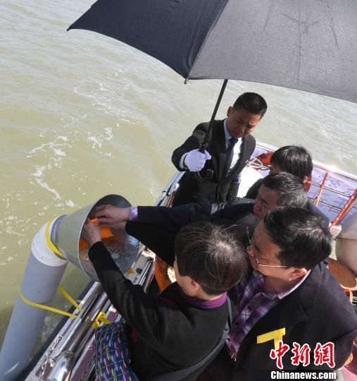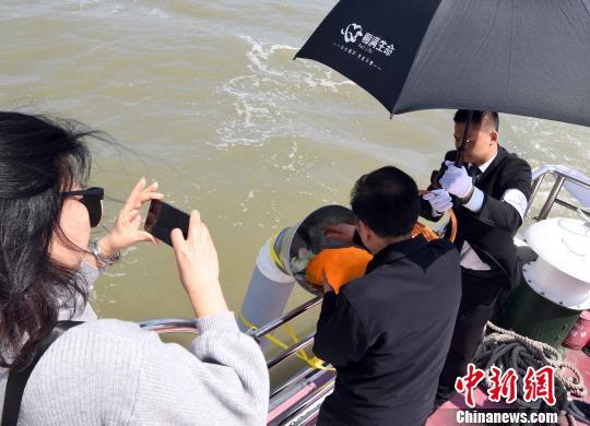 民众参加福州市2018年春季公益骨灰撒海活动。 记者刘可耕 摄