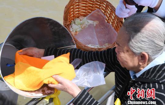 祖籍福州的程援朝专程从上海赶来参加此次公益活动。他告诉中新网记者,父母都是是福州人,父亲15岁那年遇到抗战爆发就离开故乡,后来在上海工作、安家;遵照父母生前的共同遗嘱,1987年将父亲的骨灰撒到闽江口,今天和妹妹一起来送别母亲。