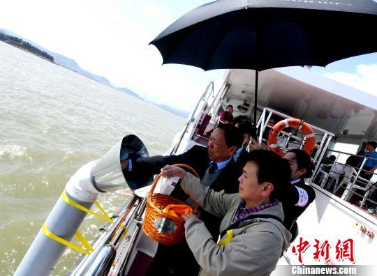 89具逝者骨灰由他们的家人护送下,乘船从福州市台江码头至闽江口,被撒向大海。 记者刘可耕 摄