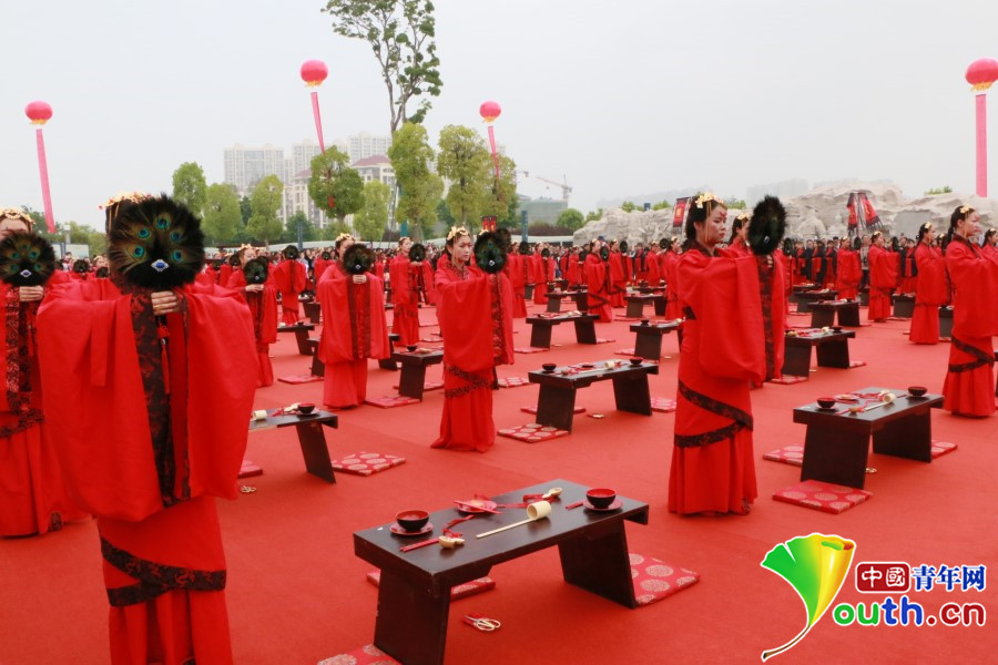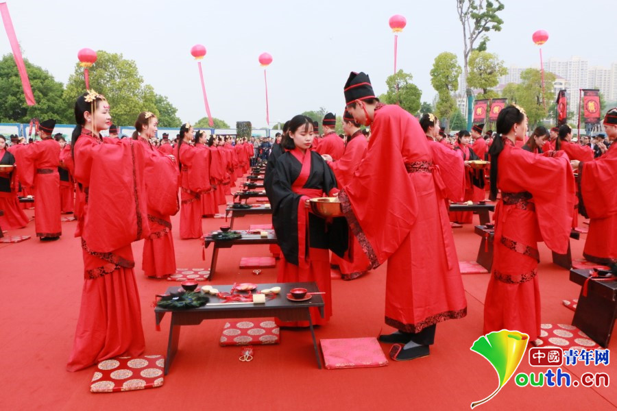 “三生三世·情定汉中”汉式户外集体婚礼现场。共青团陕西省委供图