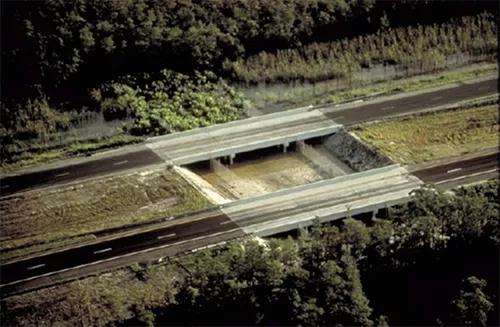 目前,发达国家在野生动物资源丰富地区的道路建设基本上都将道路和周边野生动物的关系考虑到了道路建设工程之中。其解决办法主要有两种,一是建立野生动物过路通道,二是沿公路路基两侧建设隔离挡板。这两种方式多结合使用,以隔离挡板的隔离作用阻隔动物上到公路路面,并引导动物沿挡板移动到有过路通道的地方。其效果很是非常显著的。