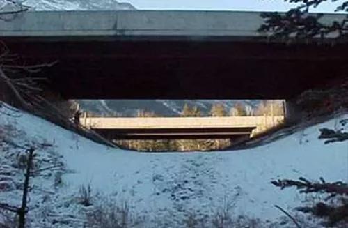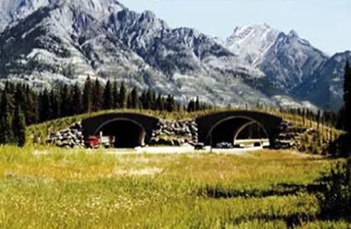 加拿大Banff国家公园的下穿式过路通道。这种通道受通道尺寸、高度,甚至材质的影响,对不同的动物需要“量体裁衣”。像鹿类、羊类等大型食草动物,通常需要较大的视野范围,因此尺寸规格必须设计的很大才能适合绝大多数野生动物。尺寸如果小,通常利用的动物都是类似于狼、狐狸、熊一类的食肉目动物。