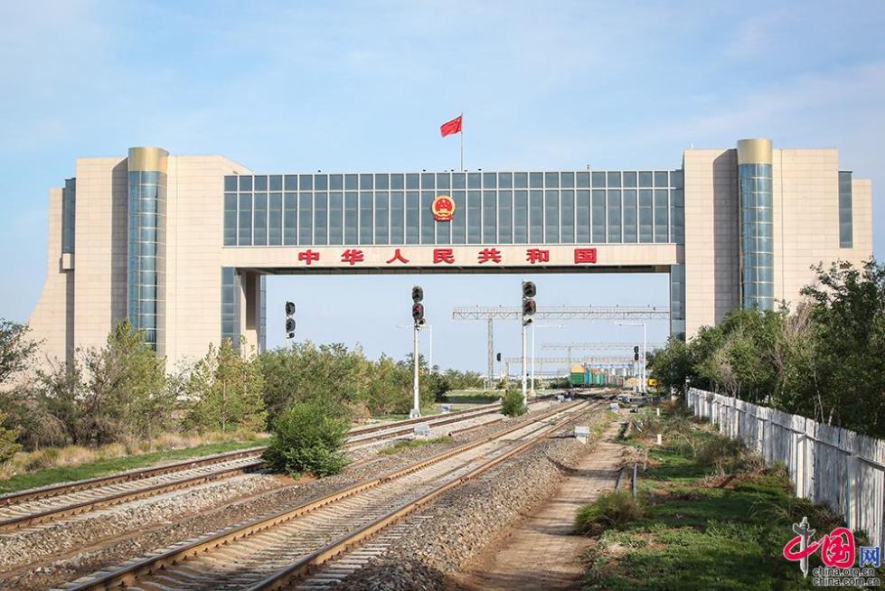 国门庄严肃穆,国际铁路在下面通过。中国网记者 伦晓璇 摄