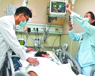 8月19日,北京天坛医院急诊科的医生在查看病人情况。新华社记者 张晨霖摄