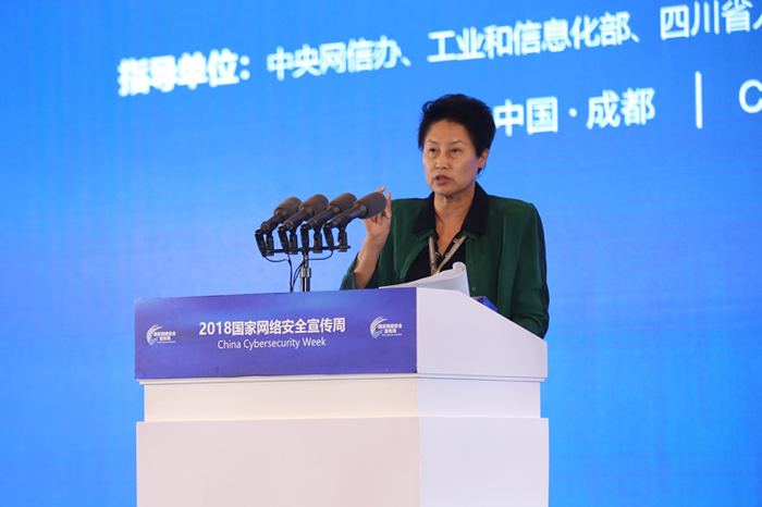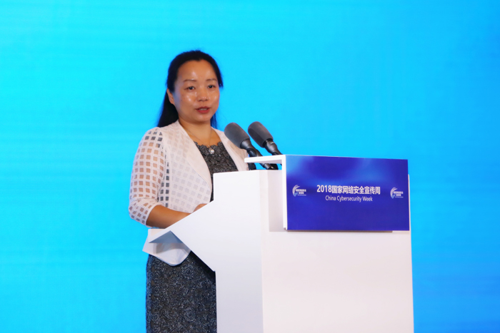 图为阿里巴巴集团首席风险官郑俊芳就《创新安全,护航数字经济》发表演讲。中国网信网 李旭 摄
