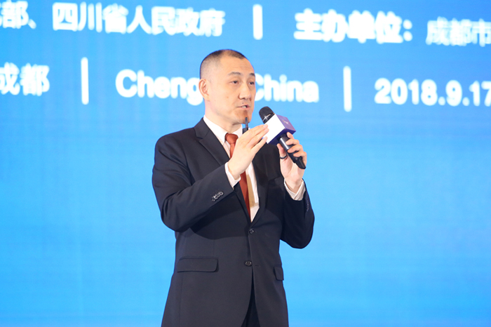 图为中国电子科技网络信息安全公司副总经理,中国电子科技集团公司第三十研究所所长卿昱就《网络安全开启全民密码时代》发表演讲。中国网信网 李旭 摄