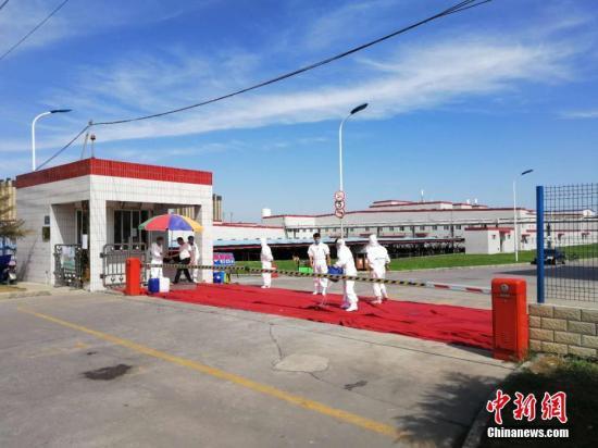 资料图:图为工作人员在向地面倾倒消毒液。 刘鹏 摄