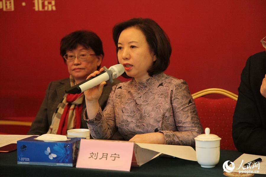 图为欧美同学会副会长、中央音乐学院教授刘月宁发言