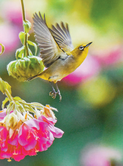 广西南宁市近日气温最高达到21摄氏度,南湖公园的芙蓉花盛开,吸引了大量的鸟儿。彭 寰摄(影像中国)