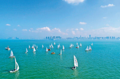 拆除了违建餐厅,修整了灌木丛,海口国家帆船基地的610个泊位,透光见海透绿见蓝。“过去的海口公共帆船码头很小。现在生活好了,愿意在文体活动上投入消费的人也多了。2018年,海口抓住海南建设国际旅游消费中心的机遇,加快了帆船港口建设,让更多的人体会到海上运动的乐趣和滨海城市的魅力。”帆船港运营方、海口海旅集团董事长杨晓峰介绍。