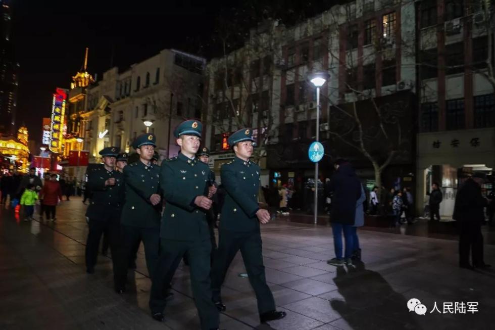 官兵们走上南京路继续巡逻