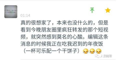 真的很想家了,本来也没什么的,但是看到今晚朋友圈里疯狂转发的那个(过年)短视频,就突然感到莫名的心酸。编辑这条消息的时候我正在吃我迟到的年夜饭(一杯可乐配一个干饼子)