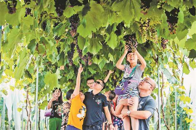 正是来此传教的法国传教士,引来了葡萄,在冯时行后辈的积极努力下,逐渐在全璧山推广开来。经过多年培育,目前璧山全区葡萄种植面积约3.6万亩,种植有蜜丽、夏黑、阳光玫瑰等40余个品种,被授予 “中国优质葡萄之乡”的称号。