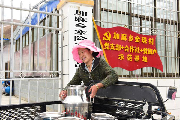 图为山南市琼结县加麻乡塞隆农畜产品加工专业合作社村民在搬运牛奶。记者扎巴旺青 丹增罗布 摄