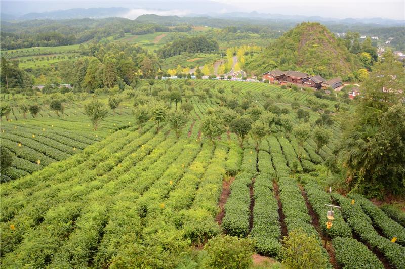 从金花村的茶园向下望去,百亩茶园风景壮丽,气势非凡。茶园里人们正在辛勤劳作,为明天更加美好的生活奋斗着。