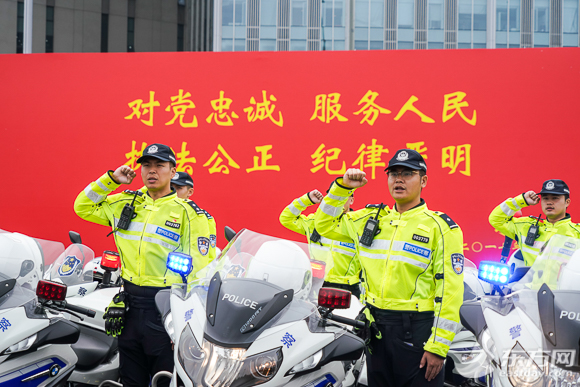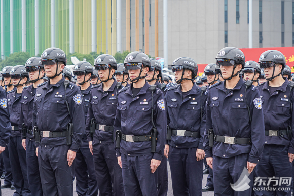 东方网记者李欢、汪伟秋10月23日报道:今天上午,上海警方在国家会展中心举行第二届进博会安保誓师大会,来自全市各警种、各公安分局的近2000名民警代表参加大会并郑重宣誓,“我光荣地参加进博会安保工作。保证不忘初心,牢记使命;忠诚履职,勇于担当;无私奉献,拼搏奋进;严守纪律,令行禁止;再接再厉,决战进博!”洪亮的声音响彻中国国际进口博览会会场——上海国家会展中心。