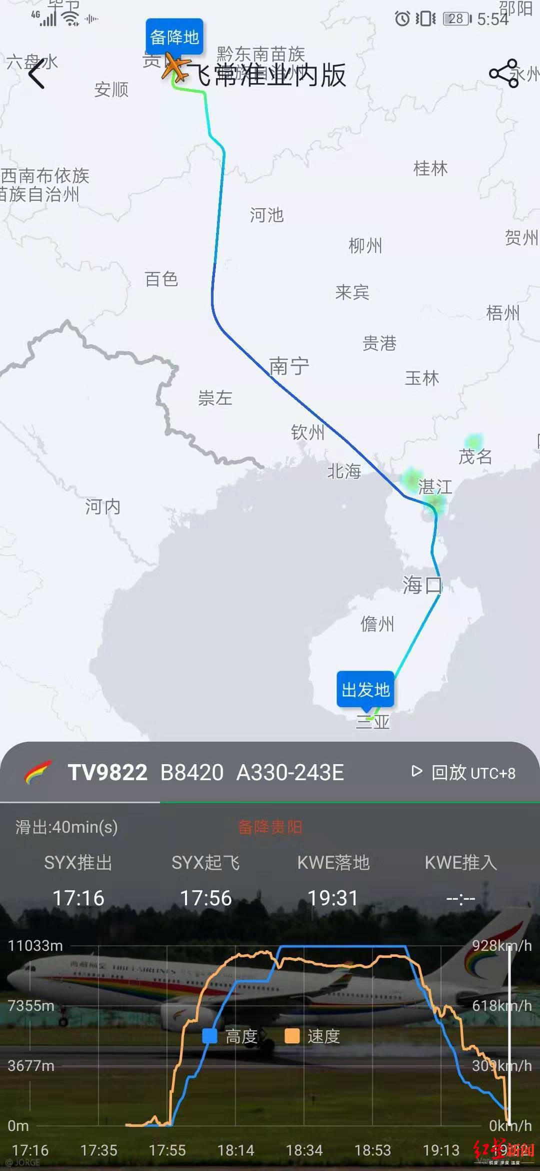 10 月 28 日,西藏航空官方微博 @西藏航空有限责任公司 在微博通报称:10 月 27 日 19 点左右,TV9822 三亚 — 成都航班(B-8420,空客 A330-243E 型)在南宁区域上空,驾驶舱右前风挡玻璃出现裂纹。机组按正常程序处置,于 19 点 31 分安全备降贵阳龙洞堡机场。20 点 08 分,地服部门对机上旅客进行了食宿保障。目前该架飞机正在进行排故,机上旅客将乘坐后续补班前往目的地。