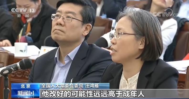 全国人大常委会委员 汪鸿雁 :要看到未成年人犯罪的极端特殊性,主观恶性远远小于成年人。再有,未成年人犯罪不同于成年人的最大特点,改好的可能性远远高于成年人。