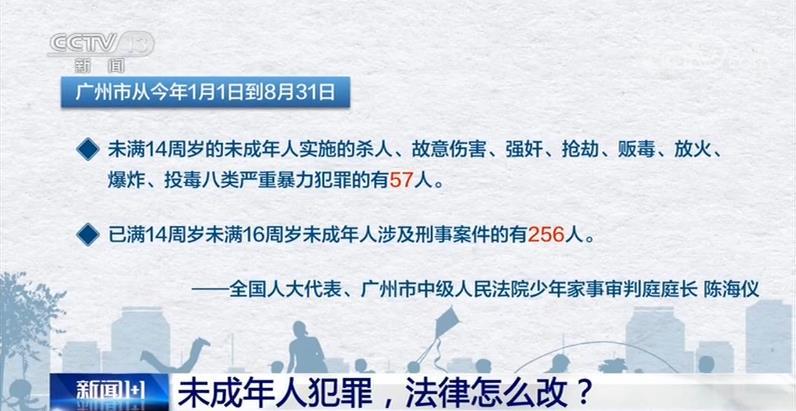 接下来我们再看严重不良行为,这个可能就会让人担心了,比如说结伙斗殴啊,非法携带枪支、弹药等管制,然后嫖娼、卖淫、吸食、注射毒品等等,这个时候就觉得应该有专门学校进行矫治和接受教育,再接下来的时候,那就要涉及到我们法律是不是要进行相关的修改,为什么呢?我们看这样的案例,仅举广州为例,为什么说我们不关注具体的这个案例呢,因为从全年的角度来说,这个类型的不少,仅仅广州市今年1月1号到8月31号,未满14周岁,不承担刑事责任的,实施的杀人、故意伤害、强奸、抢劫、贩毒、放火、爆炸、投毒八类严重暴力犯罪的57人,你想想仅仅这可是广州一个城市。