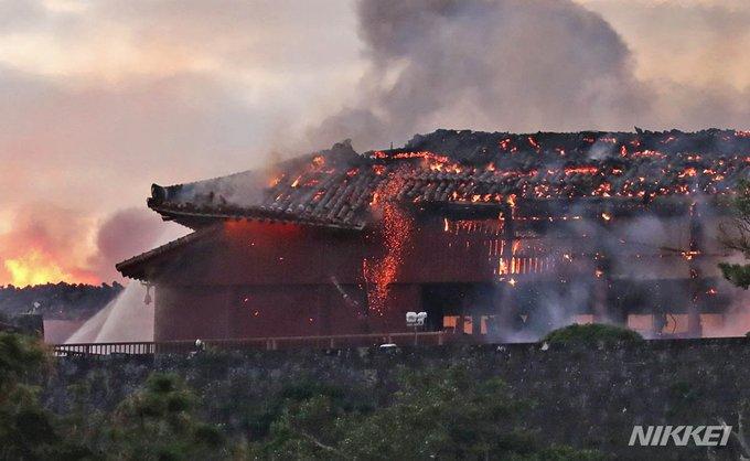 历史上,首里城三殿也多次烧毁后重建。1709年大火三殿全毁,此后于1715年重建完成,直至1945年。本次烧毁的正殿是1992年重建的,重建时参考了1768年改建时留下的记录文献。
