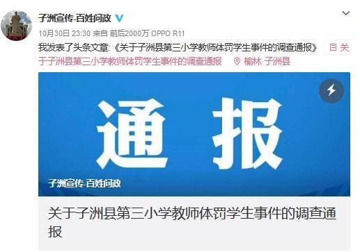 10月30日上午,子洲县委、县政府组成由县级分管领导牵头的联合调查组,对事件进行全面调查,做出如下处理意见: