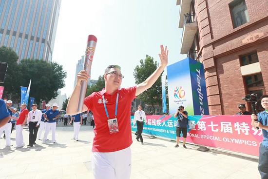 陈华铭参加第十届全国残疾人运动会火炬传递。受访者供图