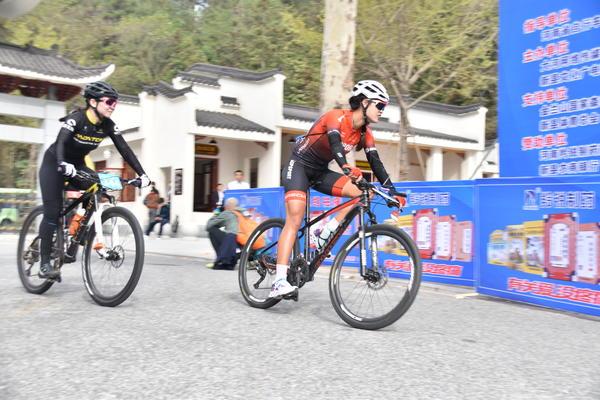 大河网讯 11月2日上午,“羚锐杯”2019河南首届环保骑行挑战赛暨全国邀请赛(新县站)在新县金兰山国家森林公园举行,来自全国各地的骑行爱好者和车队俱乐部成员300人参加。赛事共分4个组别,赛道全程4公里,爬升335米,沿途不仅山环水绕,五彩斑斓,尽享大别山秋日盛景,而且全程爬坡,弯道非常具有挑战性。