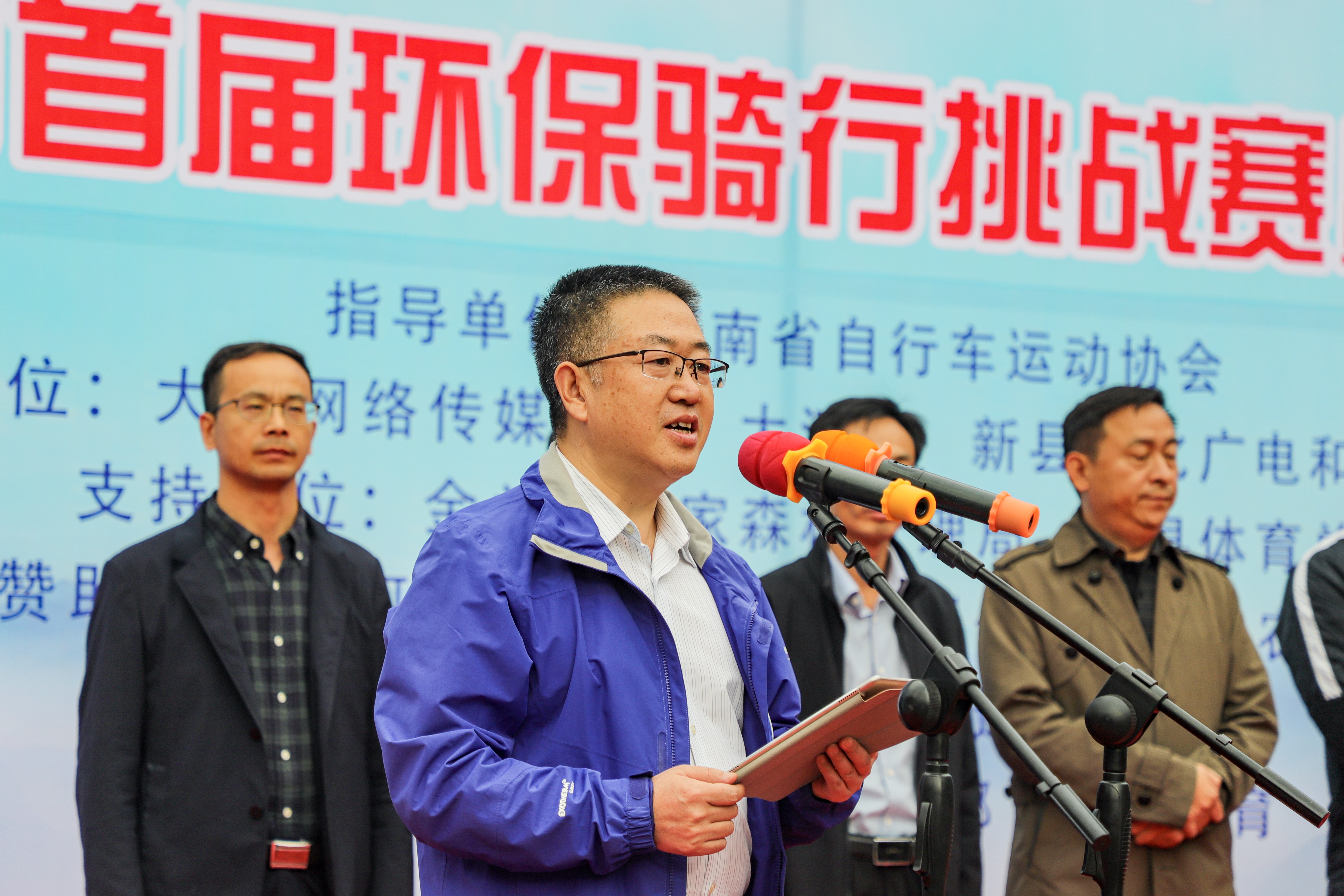 河南省自行车现代五项运动管理中心培训部部长、河南省自行车运动协会常务副秘书长杜涛在致辞中说,本次活动是新县进一步提高人民群众的健康水平和生活质量的具体实践,将在中原大地全民健身、环保生活深入开展中写下属于新县的浓重一笔。
