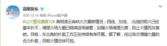 通报称,12月7日,高明区凌云森林火灾西线、东线、 北线的明火已基本扑灭,清理火场力量已陆续进场接管,加强火场清理力度,防止火情死灰复燃。目前,东北角的扑救工作正在持续有序开展。据了解,经过各方增援力量的合力扑救,火情总体可控,