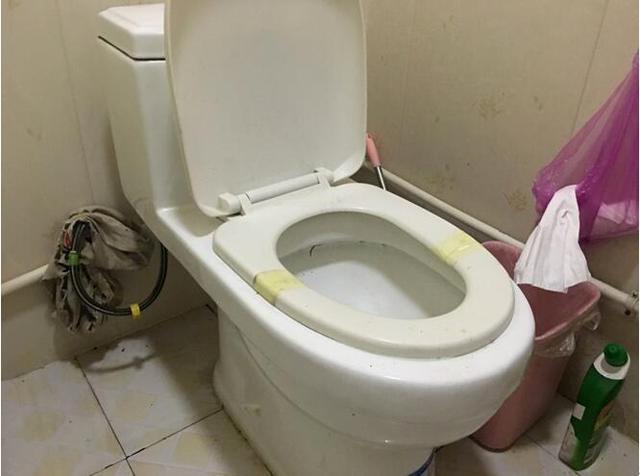 10月22日,在元山子村王二板家,记者看到她家的马桶圈上缠着胶带。“用了还不到一个月,两边就坐烂了,也不知道联系谁更换。”