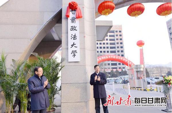 胡焯、张世珍共同为甘肃政法大学揭牌。