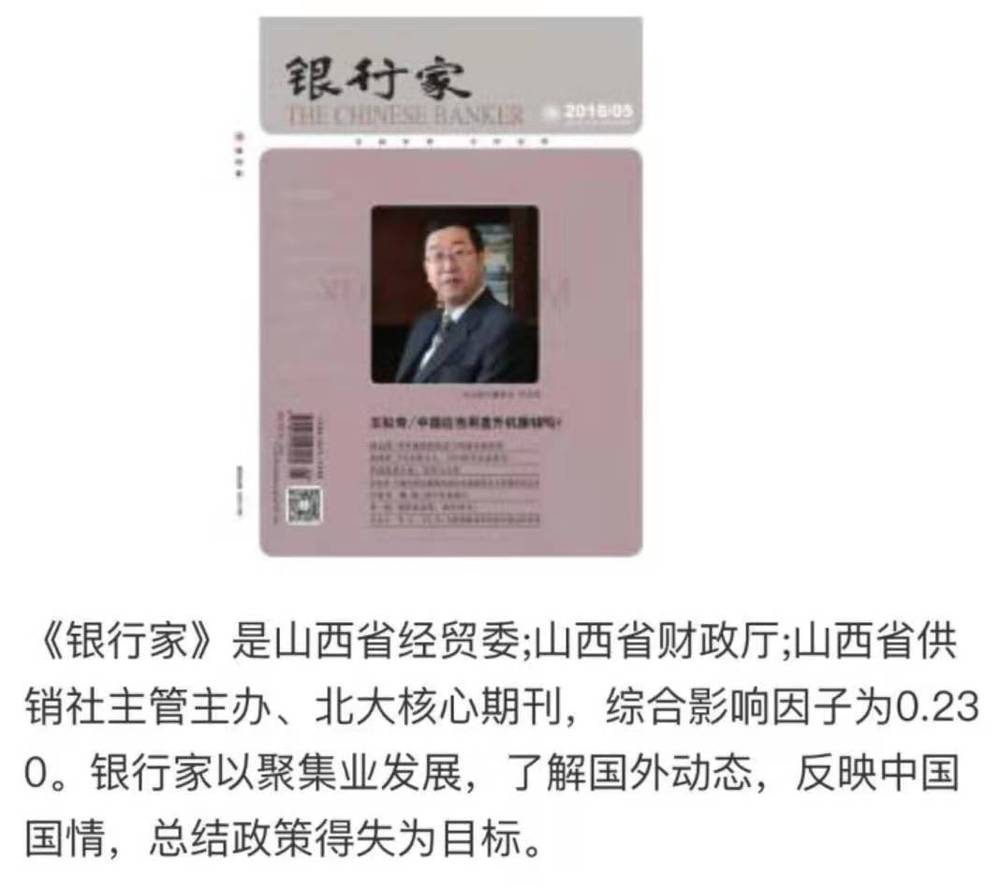 公开信息显示,《银行家》是山西省社科院主管、被列为中国社会科学院人文核心期刊目录的一本专业刊物。该期刊宣称“以推动中国金融业改革与发展为己任,密切关注中国金融改革和金融发展的进程”,志在成为“聚焦业内发展的镜头,了解国外动态的窗口,反映中国国情的阵地,总结政策得失的平台,记录精彩人生的档案”。