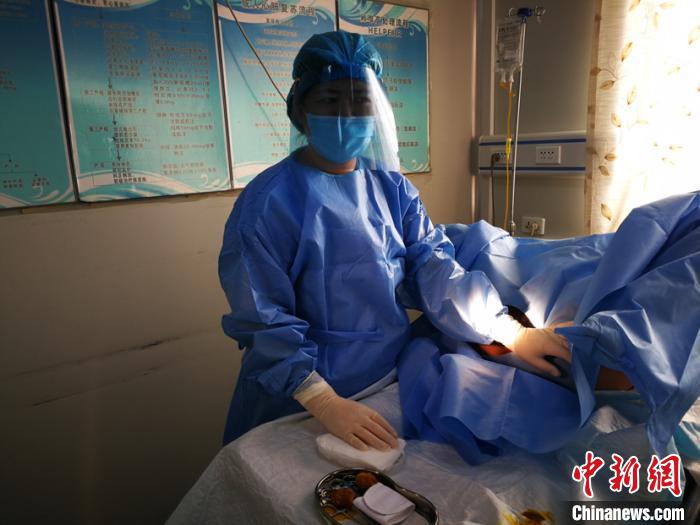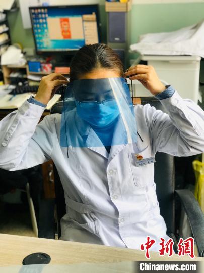 图为医护人员自制防护面罩。 孙丽霞 摄