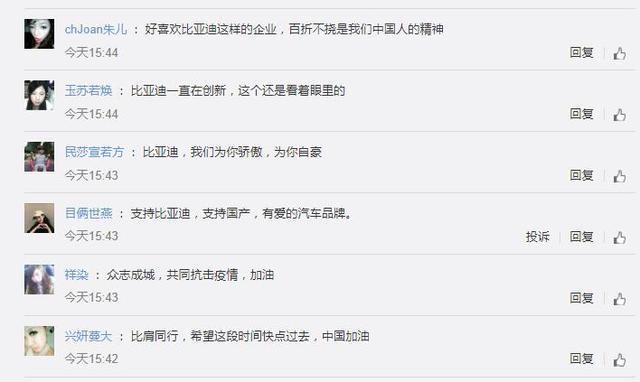 对于比亚迪汽车跨界造口罩一事,网友纷纷表示:“众志成城,共同抗击疫情”“百折不挠是中国人的精神”“希望这段时间快点过去,中国加油”。