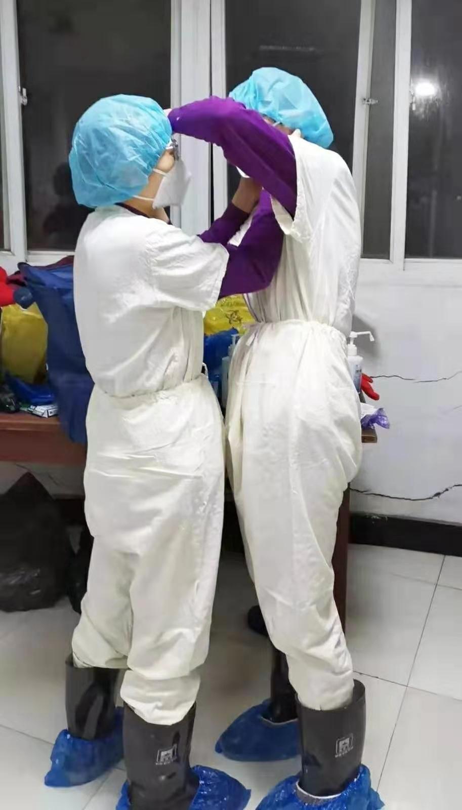我去年8月结婚,婚后这第一个春节本来准备和老公去看公公婆婆。1月22日(腊月二十八),我在节前的最后一个夜班,接班时,在员工通道第一次穿上防护装置。进入工作区,我看到前来就诊的发热病人挤满了整个大厅,同事们都全副武装,在各自的岗位上为患者服务,为各部门运送物资,定时定量定区进行消毒。