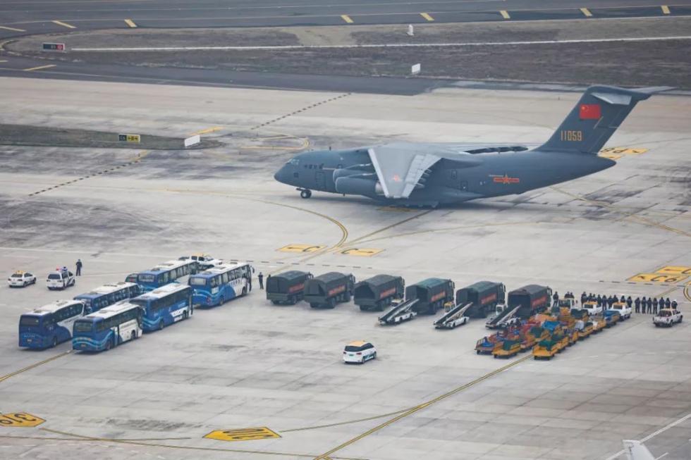 上午9时30分许,11架空军运输机全部抵达武汉天河机场。这是我国国产运-20大型运输机首次参加非战争军事行动,也是空军首次成体系大规模出动现役大中型运输机执行紧急大空运任务。