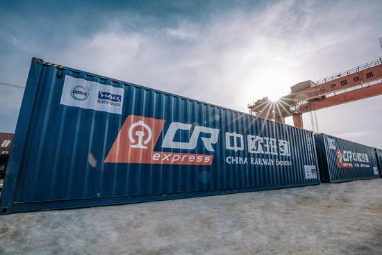 由沃尔沃汽车大庆工厂生产的S90搭乘中欧班列出口至比利时等西欧国家。