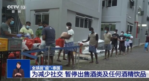 泰国曼谷市政府9日宣布,为减少民众 社交,从本月10日起至20日,暂时禁止出售任何酒类及酒精饮品。9日,在曼谷市中心超市,不少民众赶在禁酒令生效前 前来囤酒,一些货架已被抢购一空。