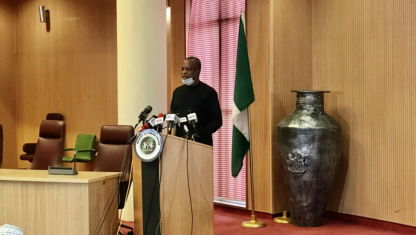 当地时间4月14日,中国驻尼日利亚大使周平剑在与尼日利亚外交部长奥尼亚马会见后举行了联合记者会,就近期所谓“尼日利亚公民在广州遭到不当对待”进行了澄清和说明,并介绍了目前尼日利亚在广州被隔离公民的最新情况。