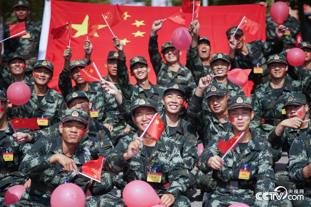 武警官兵用青春告白:祝福祖国 与国旗同框