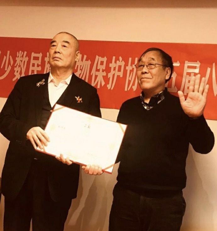 中国少数民族文物保护协会会长杨华山为副会长庞龙发荣誉证书