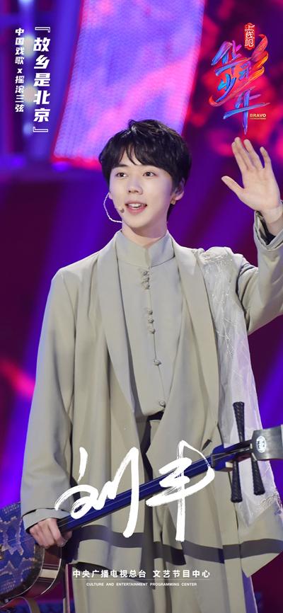 《上线吧!华彩少年》的舞台上,22岁的刘丰怀抱大三弦儿,弹唱着一首32年前的老歌。