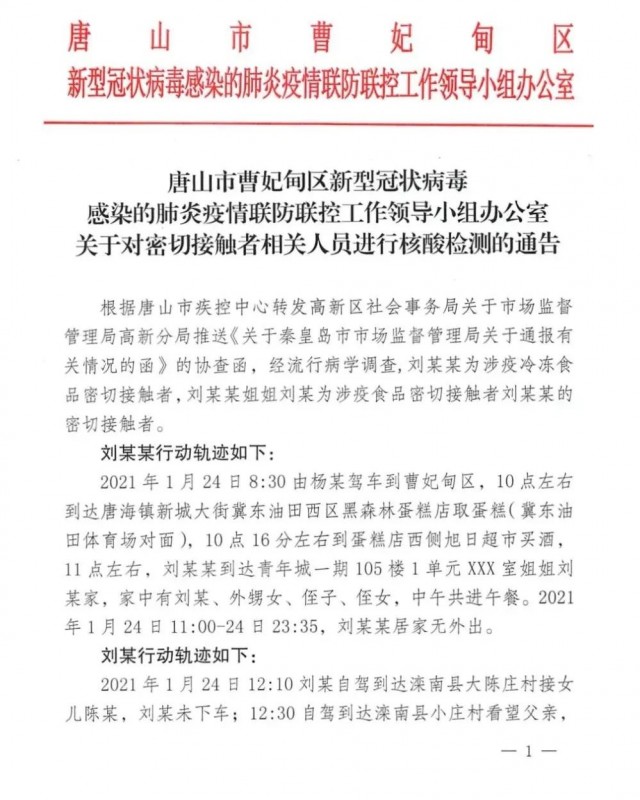 点击查看→唐山市古冶区、乐亭县、迁安市、滦南县、盐山县最新通告点击查看→唐山市曹妃甸区最新公告明起开始新一轮全员核酸检测!隆尧县最新通告