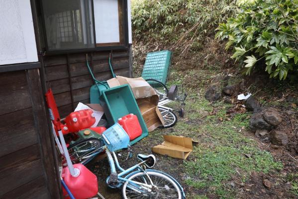 2月15日,在日本福岛县二本松市,迟耒收拾家门口的物品。新华社记者 杜潇逸 摄