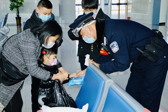 山西天镇车站派出所民警与防疫人员一起为旅客群众讲解防疫消毒知识。李蒙/摄