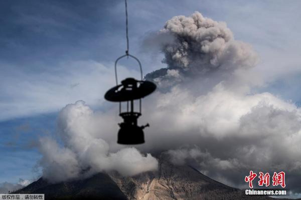 印尼锡纳朋火山喷发 滚滚浓烟直冲天际