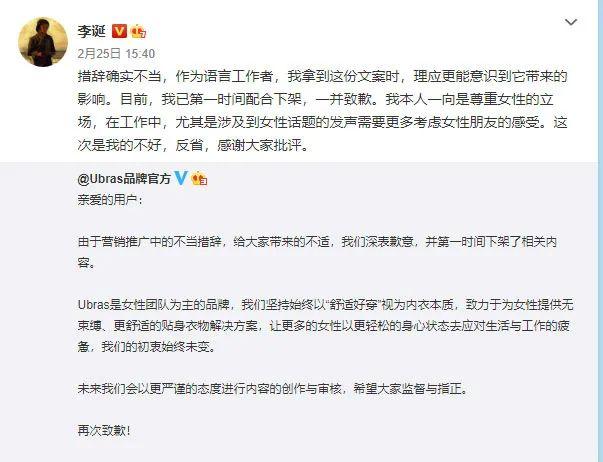 从品牌工作流程层面看,一个营销项目在执行的过程中,通常会有大量人员参与。这种情况下,争议文案仍能成功发布,不得不说是女性视角的缺失。而全棉时代引发争议后,在致歉信中长篇大论宣传企业作为的回应方式,则更是一种自上而下的傲慢。